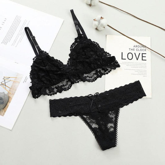 T-BOO Women Lace Bra and Briefs Set Sexy Wire Free Lingerie Hollow Out G-String Bra Set Transparent Seamless Intimate Underwear Set- Regular price