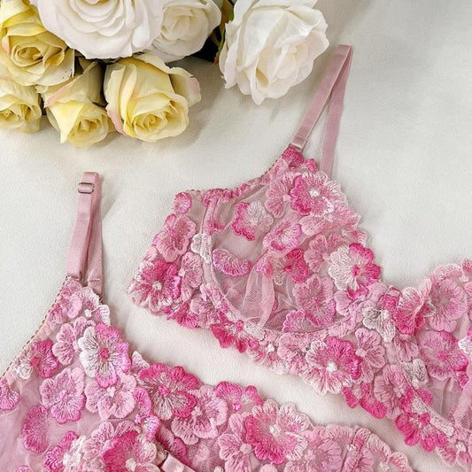T-BOO Woman Sexy 2 Pieces Lingerie Set Luxury Floral Embroidery Set Underwire Bra Thongs Exotic Intimates- Regular price