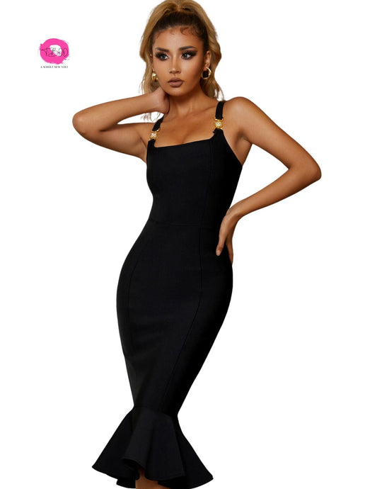 T-BOO 2023 New Summer Sexy Mermaid Black Bandage Dress Spaghetti Strap Women Sleeveless Bodycon Club Evening Runway Party Dress- Regular price