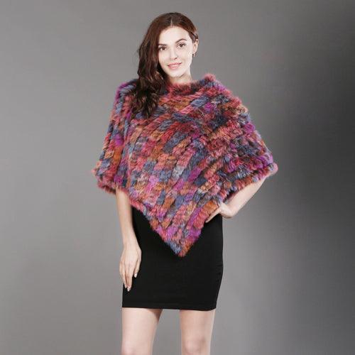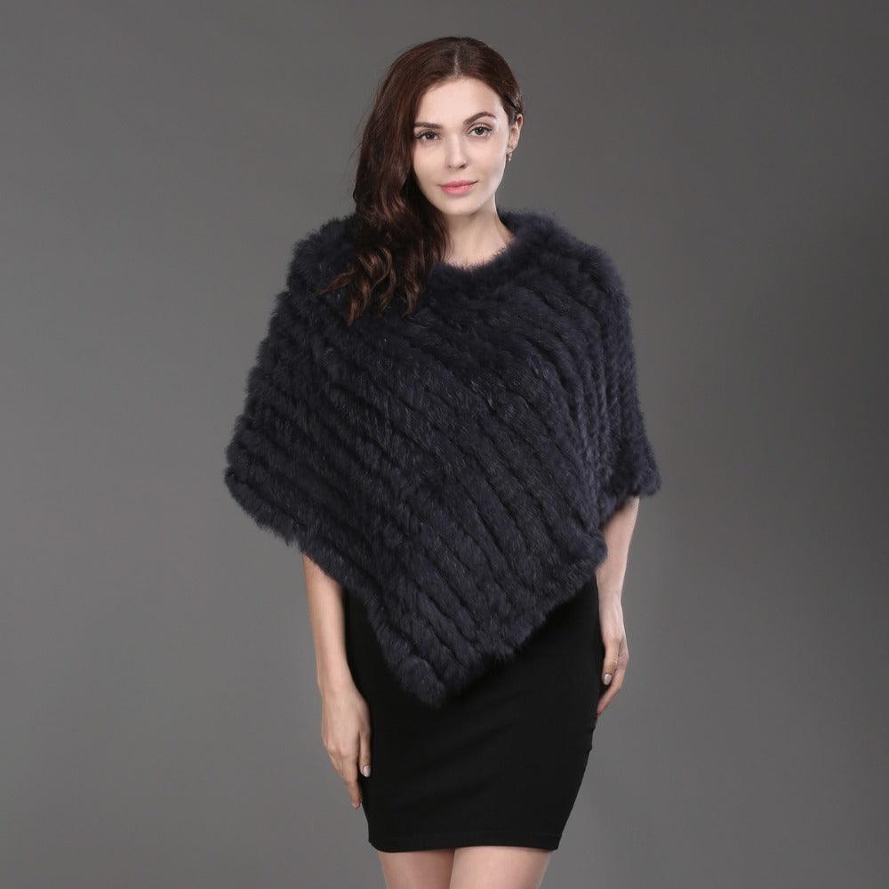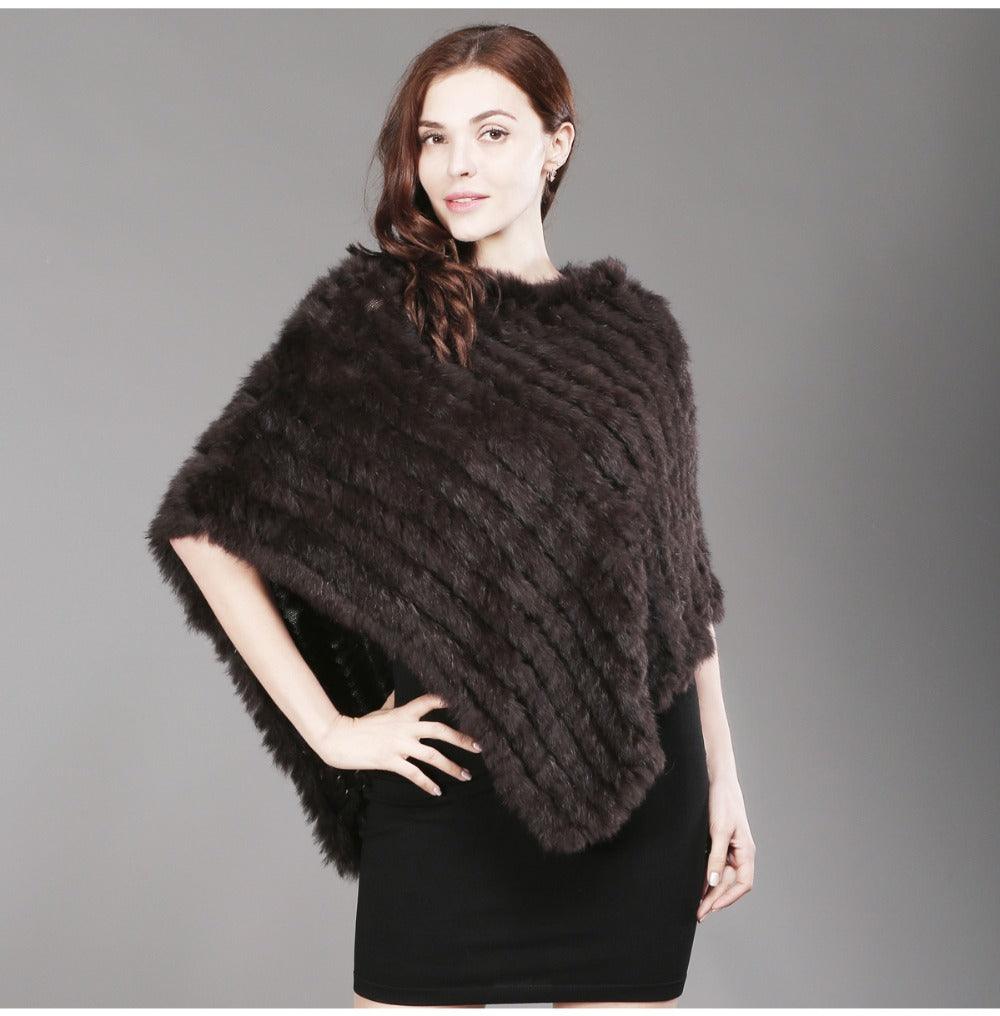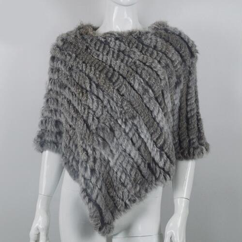 Genuine Real Knitted Rabbit Fur Poncho Wrap Scarves Women Real Rabbit Fur Shawl Scarf Triangle Cape Free Shipping