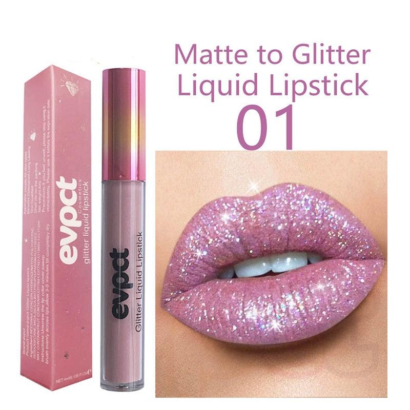 Diamond Glitter Shimmer Lip Gloss Liquid to Matte Lipstick Long Lasting Waterproof Lipgloss Lip Makeup