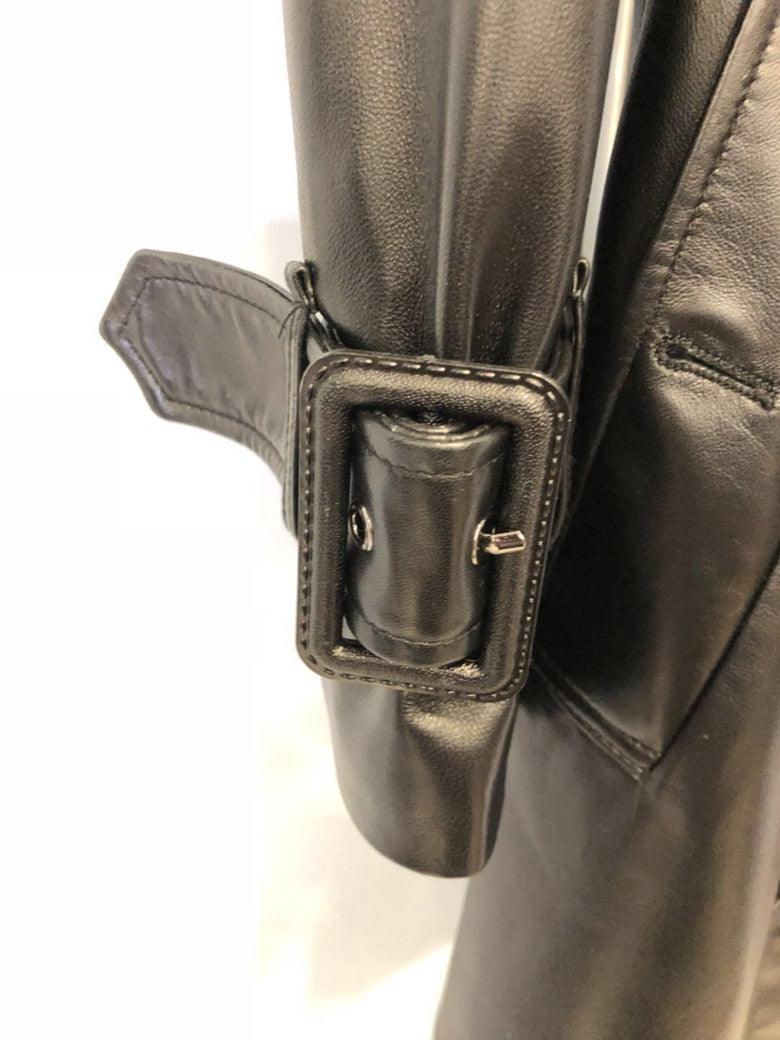 Genuine Leather Trench Coat Women Plus Size Long Coats Ladies Sheepskin Winter 2019 Black Lambskin Trench Coats Female