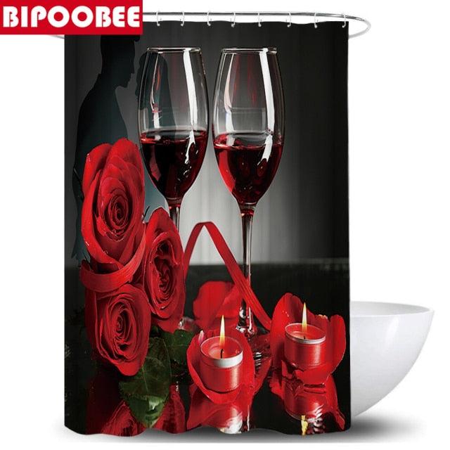 Red Rose Wine Romantic Shower Curtain Set Toilet Lid Cover and Bath Mat Valentine's Day Bathroom Curtains with Hooks Home Decor