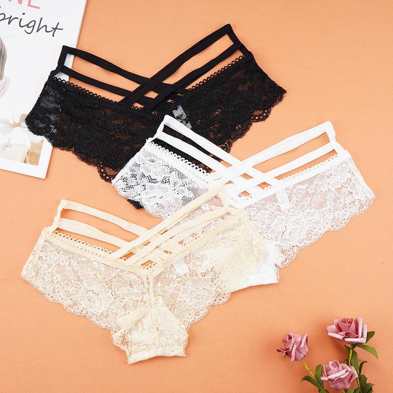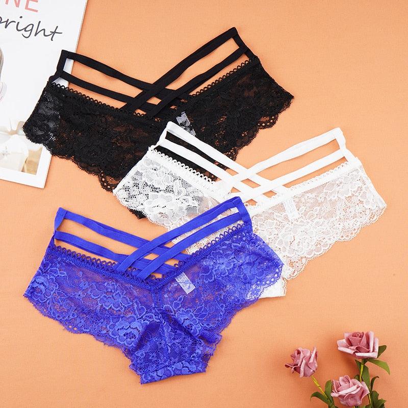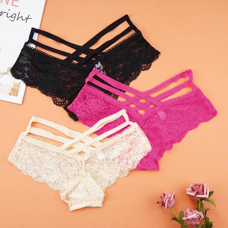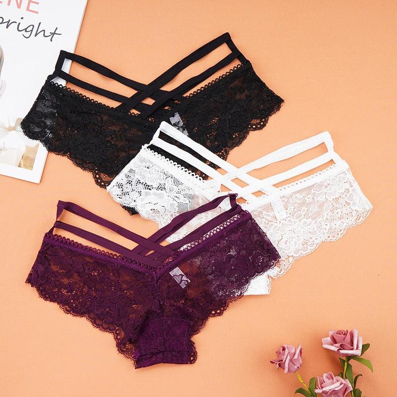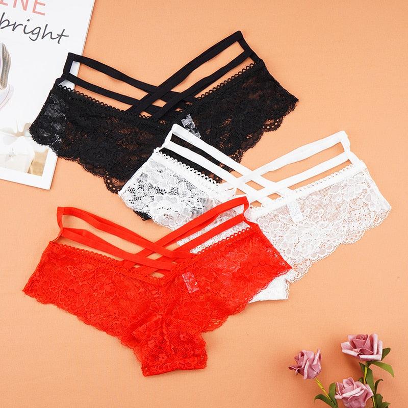 T-BOO Sexy Women Lace Panties 3pcs Low-Rise Solid Sexy Briefs Underwear Cross Strap Ladies Lingerie