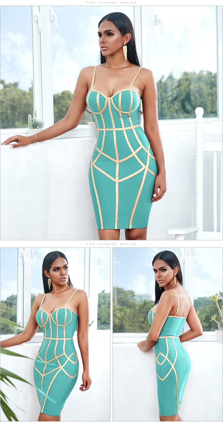 T-BOO Bodycon Women New Summer Bandage Dress Sexy Spaghetti Strap Sleeveless Club Knee Length Celebrity Evening Party Dress