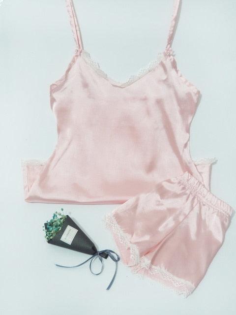 Women Pajama sets Sexy Deep V-neck Lace nightgown Adult Sleepwear