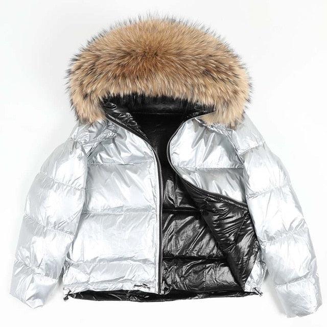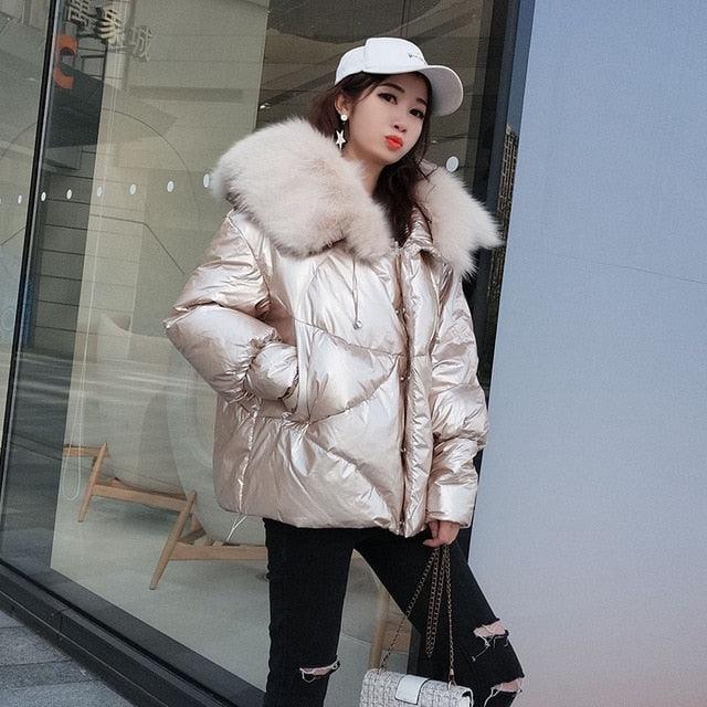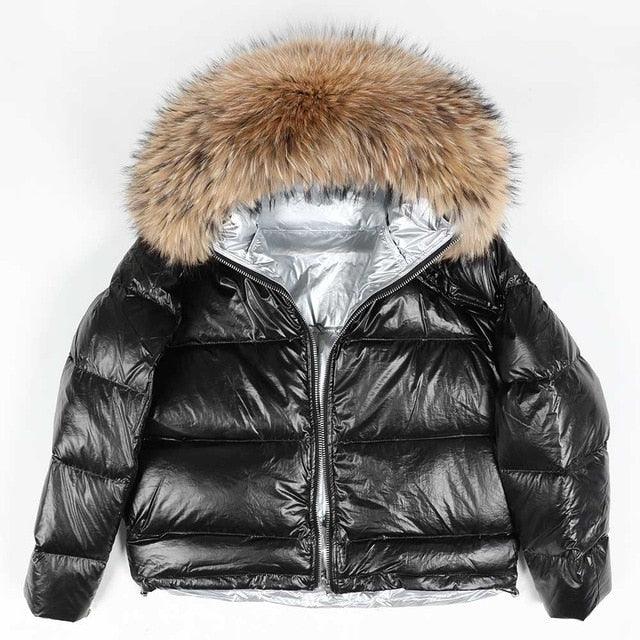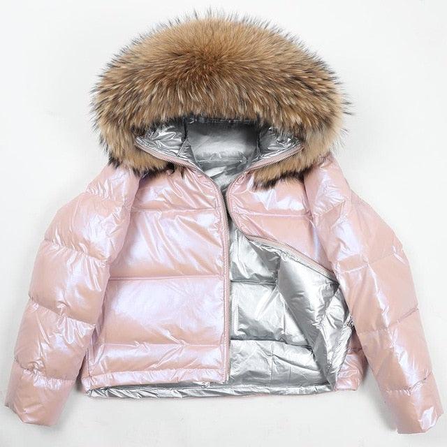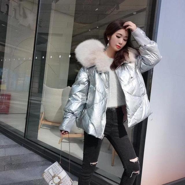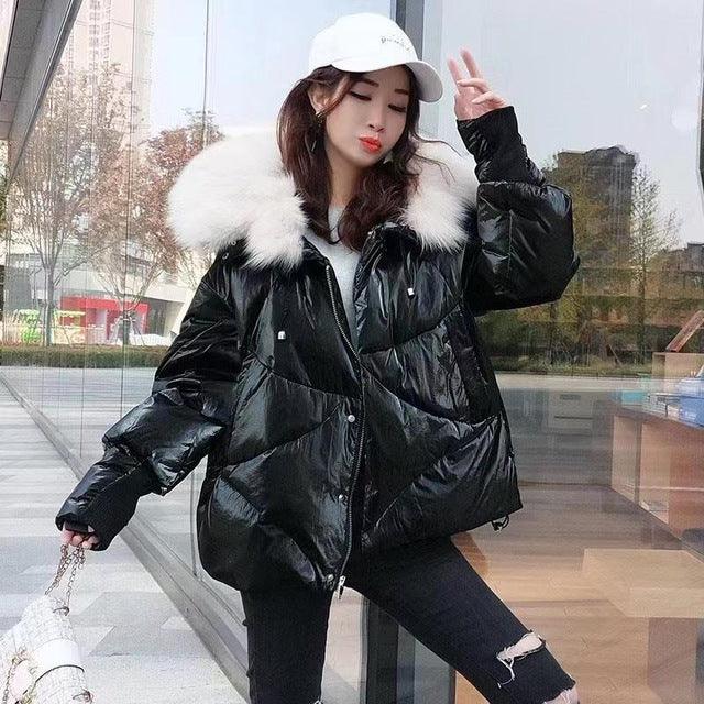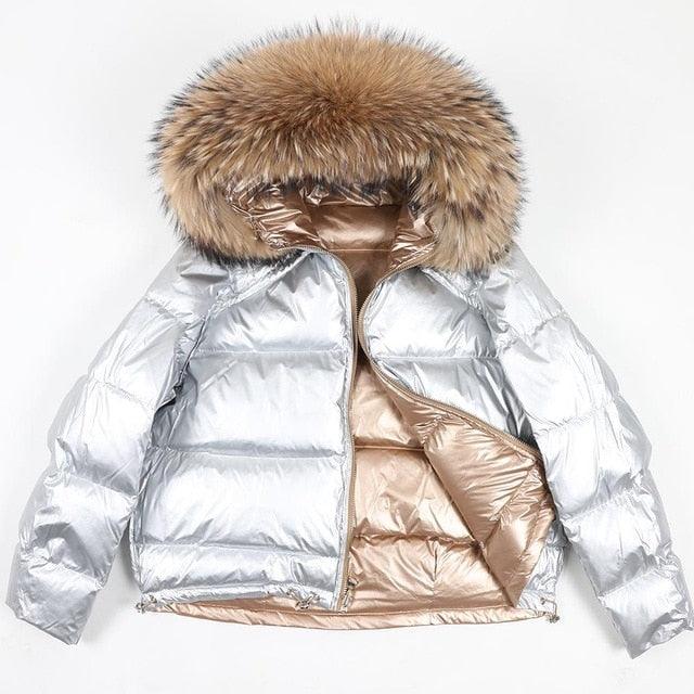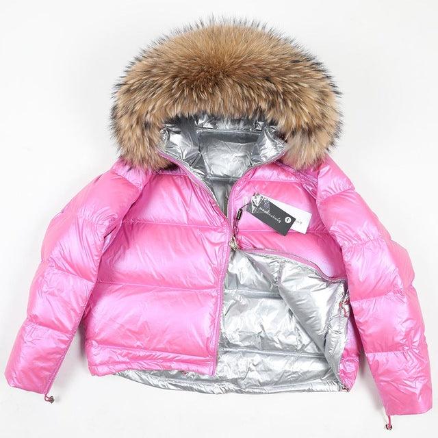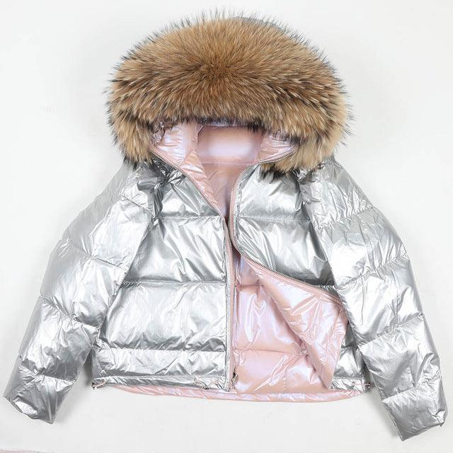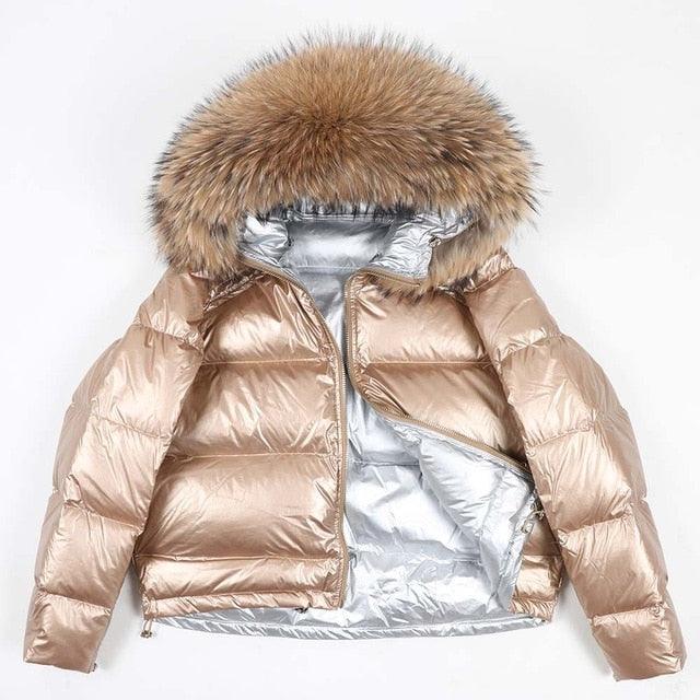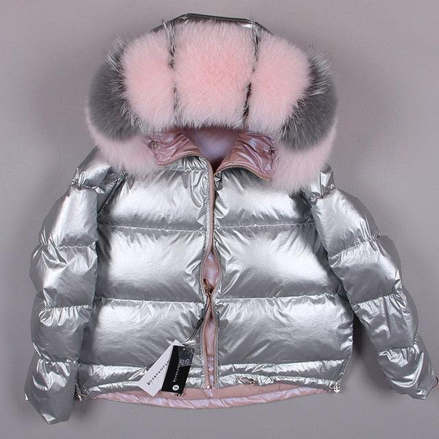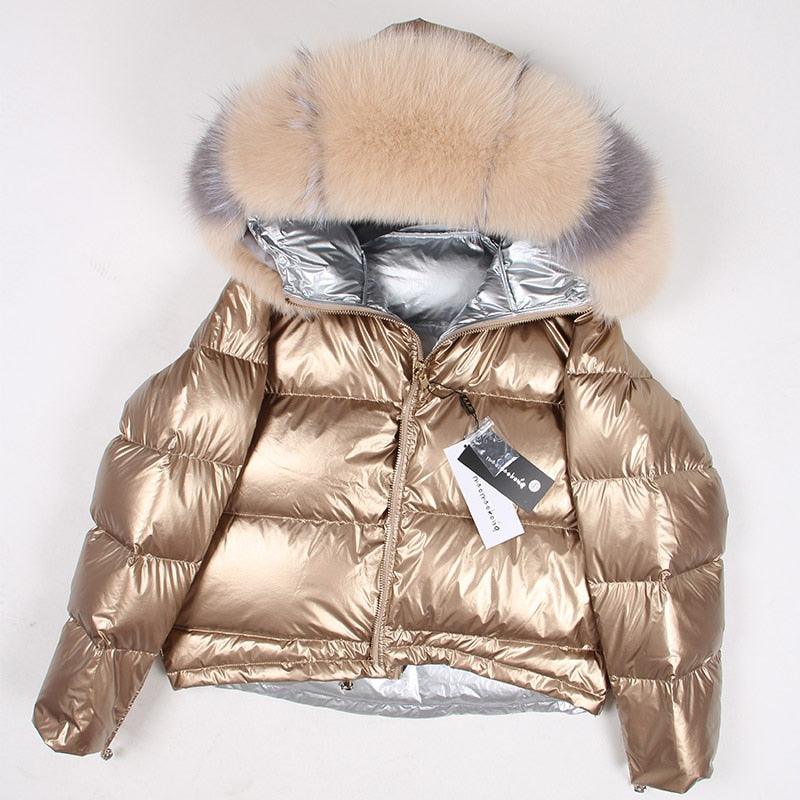 Women's 2019 Winter Jacket Natural Fox Fur Collar Short Thick Duck Down Coat Jacket