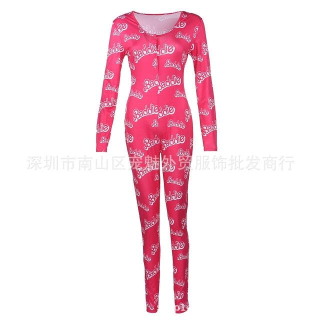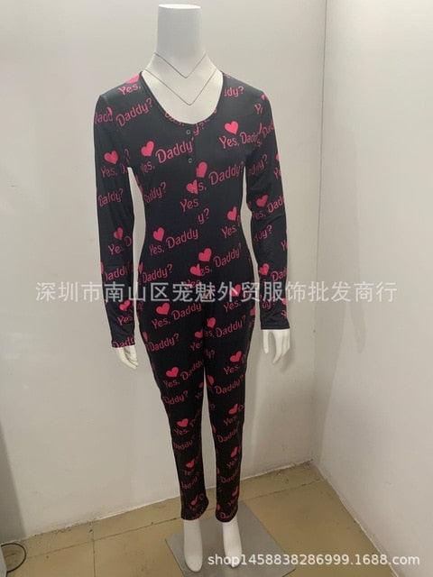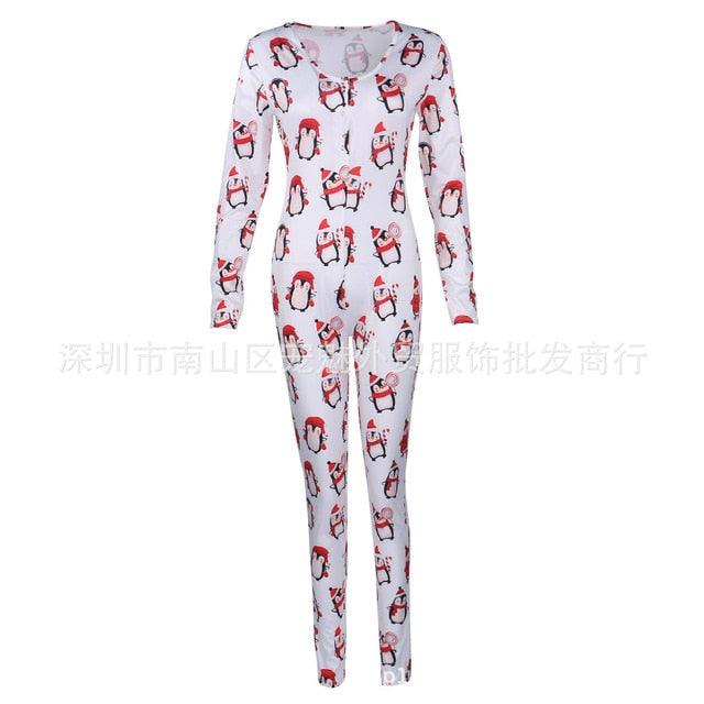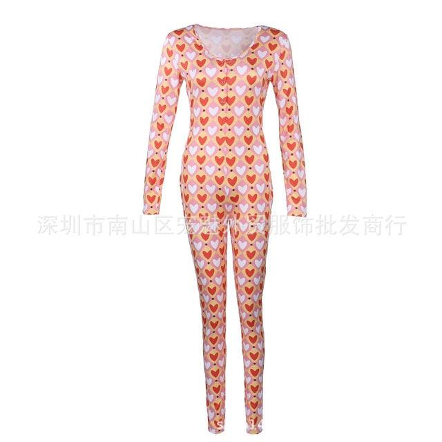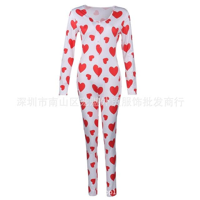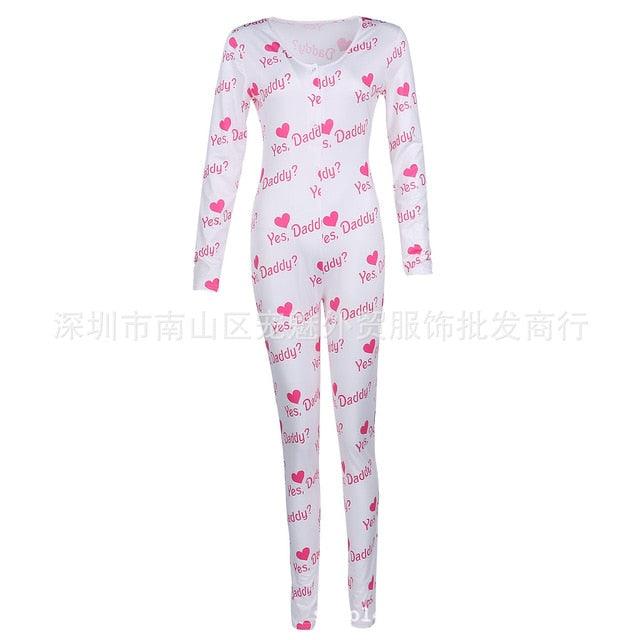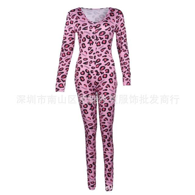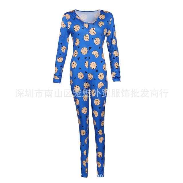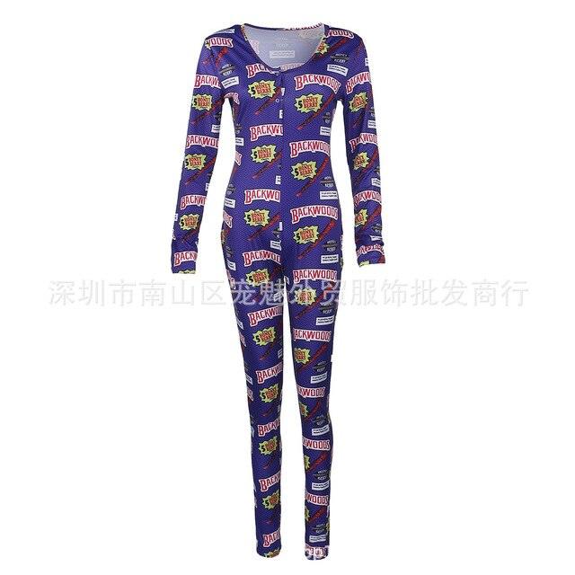 Womens Sexy Onesies Jumpsuit Cartoon print Sleepwear long Sleeve Romper Bodycon Jumpsuit Bodysuit