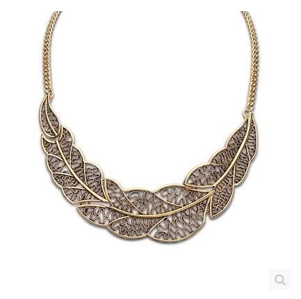 Jewelry wholesale Vintage Antient Gold Silver Leaf Pendant Statement Necklace For Woman New collar necklaces & pendants
